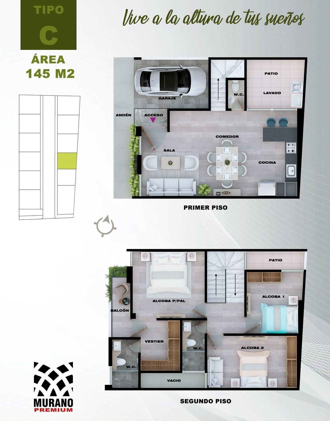 Conjunto residencial casas murano premiun de 2 pisos 198m2.